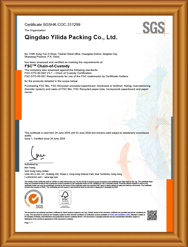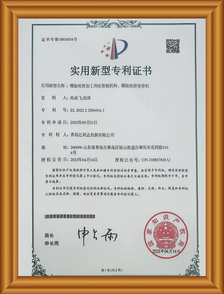 محصولات ما دارای گواهی FSC، گواهی ISO9001، دارای هفت اختراع، از جمله یک دستگاه لوله کاغذی مناسب U شکل، گواهی شرکت تخصصی و نوآورانه کوچک و متوسط، تست Puni، و گواهی تامین کننده کیفیت هستند.